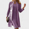 Le contraste entre le tissu opaque de la robe et la transparence délicate de la veste crée une harmonie visuelle raffinée. Avec ses manches 3/4 et sa coupe droite, cet ensemble vous garantit une allure classique et élégante.