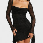 Où il y a de la brillance, il y a du pouvoir – cette robe mini noire avec des pierres est une véritable affirmation de style. Conçue pour celles qui souhaitent se démarquer avec élégance et confiance, elle présente un décolleté drapé pour une touche sensuelle et sophistiquée.